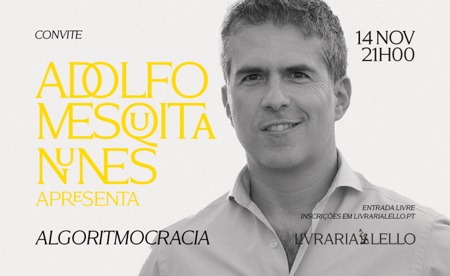 É já no próximo dia 14 de novembro, sexta-feira, às 21 horas, que Adolfo Mesquita Nunes apresentará o seu novo livro, Algoritmocracia, no Porto, na Livraria Lello, onde irá estar à conversa com o economista Jaime Quesado.