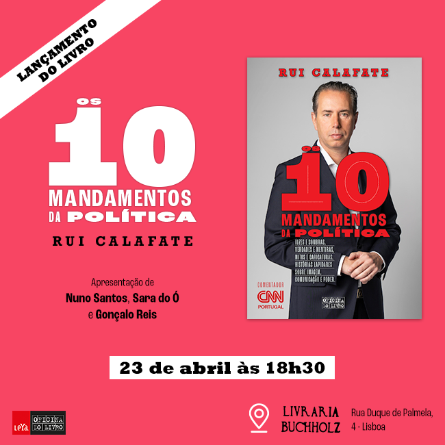 Sessão de apresentação do livro Os 10 Mandamentos da Política (Oficina do Livro), de Rui Calafate, apresentado por Nuno Santos, Sara do Ó e Gonçalo Reis, às 18h30, na Livraria Buchholz, Lisboa.