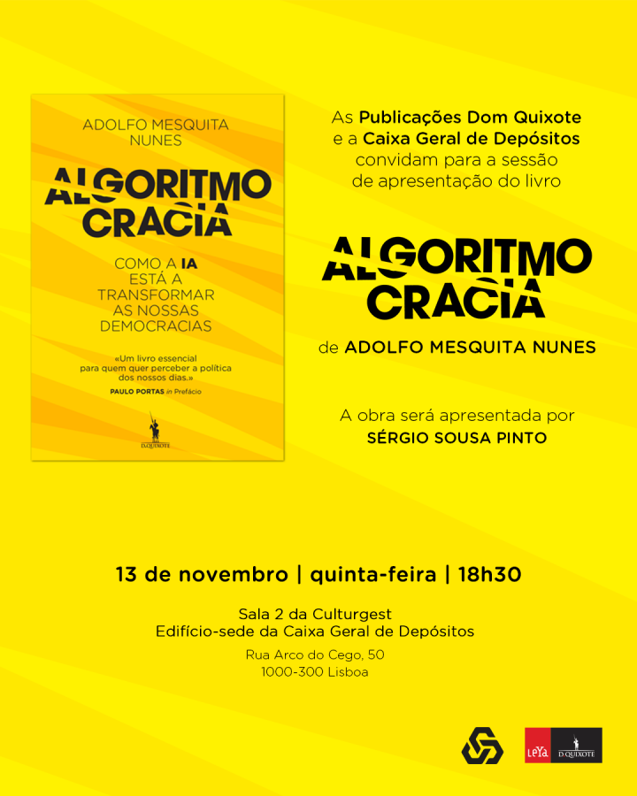 Sérgio Sousa Pinto apresenta Algoritmocracia, de Adolfo Mesquita Nunes, de Adolfo Mesquita Nunes, reflexão sobre a forma como a IA está a transformar as democracias ocidentais e a incentivar extremismos e populismos. Um livro com prefácio de Paulo Portas que o considera “essencial” para perceber a política dos nossos dias.